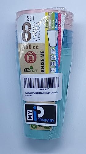 Mypicompany. Set da 8 bicchieri plastica rigida lavabili da 450ml riutilizzabili, Bicchieri bambini in colori pastello, senza BPA