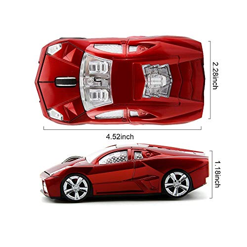 MySixKeen Mouse da gioco ottico wireless a 2,4 GHz Mouse senza fili a forma di auto sportiva Mouse 3 pulsanti DPI 1600 per PC Computer portatile (rosso)