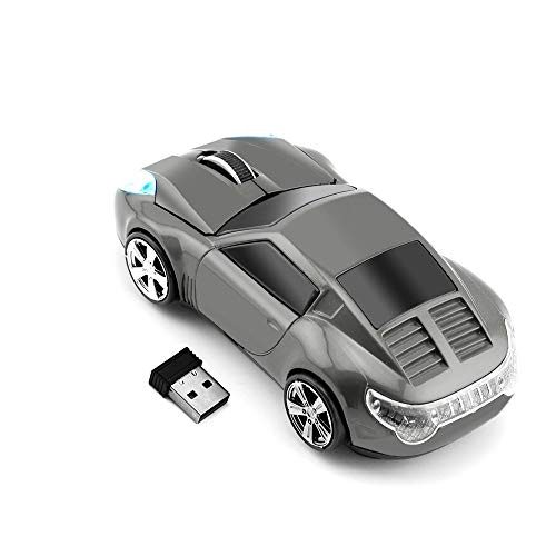MySixKeen Mouse wireless da 2,4 GHz Mouse da gioco ottico senza fili a forma di auto sportiva Mouse 3 pulsanti DPI 1600 per PC Computer portatile (grigio)