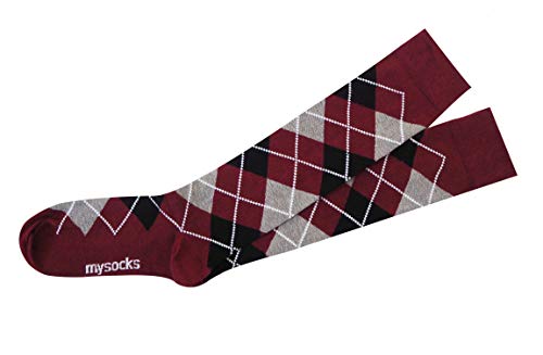 Mysocks Calzini alti al ginocchio Argyle Cenere nera di Borgogna