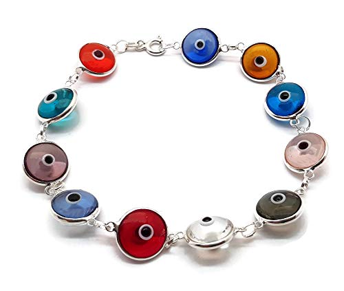 MYSTIC JEWELS By Dalia - Bracciale in Argento Contro Il malocchio - 19 cm e Argento, (Multicolore Transparente)