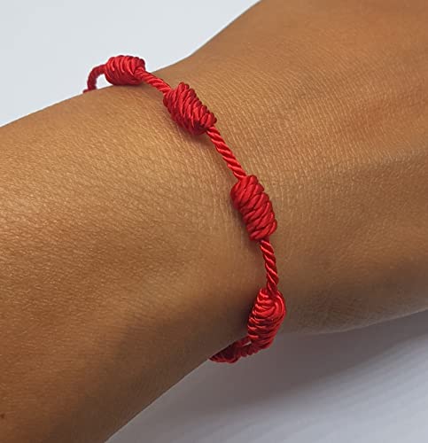 MYSTIC JEWELS By Dalia, braccialetto Cabala, in cordoncino di filo rosso, con 7 nodi, unisex, regolabile, per la protezione contro il malocchio, portafortuna (2 pezzi)