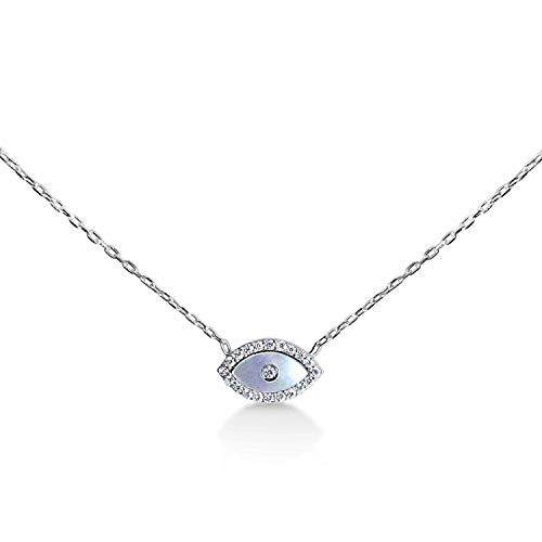 MYSTIC JEWELS by Dalia - Collana a forma di occhio turco, in argento Sterling 925 con zirconi cubici e madreperla (Argento 925)