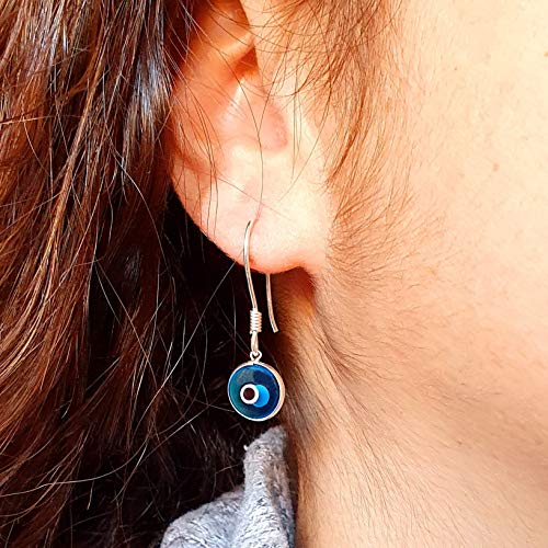 MYSTIC JEWELS By Dalia - Orecchini in argento Sterling 925 a goccia, occhio turco rotondo per buona fortuna e Argento (Azzurro)