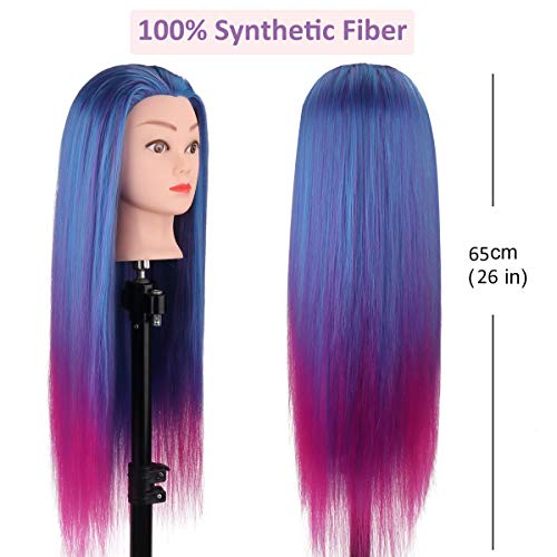 MYSWEETY 26" 100% Capelli Sintetici Testa per Parrucchieri Testina Parrucchiere Testa Studio Parrucchiere Manichino Cosmetologia Formazione Pratica Modello Capelli con Morsetto+ Accessori per Capelli