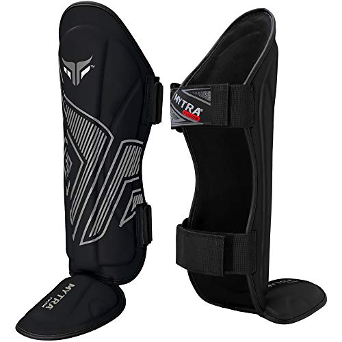 Mytra Fusion Adult Shin Pad, Shin Protector, Shin Guard For Boxing, MMA, Muay Thai, & Martial Arts Training (Black, S/M)