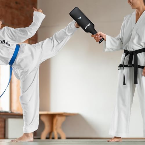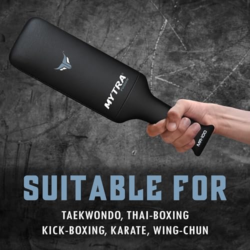 〖 MATERIALE DI QUALITÀ ULTRA 〗 I cuscinetti per karate Mytra Fusion sono lunghi 39 cm, larghi 11 cm e spessi 4,5 mm. Il kick pad Mytra Fusion taekwondo è realizzato in ecopelle di altissima qualità. Questi cuscinetti per arti marziali ti permetteranno di esprimerti mentre fai qualcosa che amano.