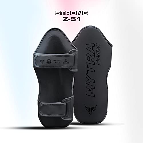 Mytra Fusion paratibie kick boxing parastinchi Pelle artificiale MMA paratibie Muay Thai, Allenamento, Sparring, Kickboxing, Arti Marziali parastinchi (S, Black)