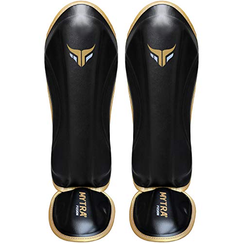 Mytra Kids Shin Guards Shin Pads Shin Protector for Boxing MMA Muay Thai Martial Arts Kickboxing Workout Training Protection (Black, XS)
