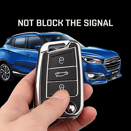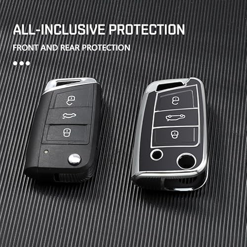 Z.MYUKI 【4 colori】 R-Line Allspace Cover Chiave con VW MK2 2016-2022 2023 Portachiavi per Accessori Key Cover (Nero)