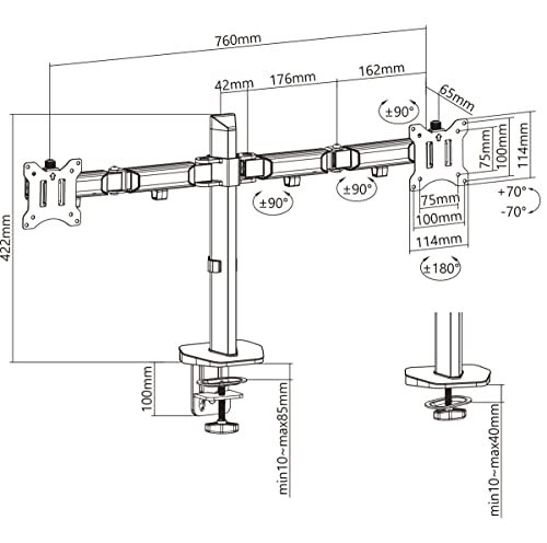 MyWall HL50-2L - Supporto per doppio monitor da 17-32", inclinabile, girevole, altezza regolabile, portata 9 kg, VESA 75/100