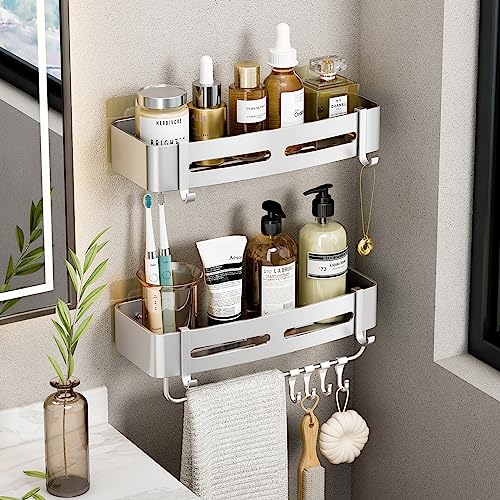MZFANG Mensola Doccia Senza Foratura Mensole Bagno Alluminio Set da 2 Muro Organizzatore Parete Doccia con Ganci Porta Bagnoschiuma Cestino per Bagno Scaffale Cucina (Nero)