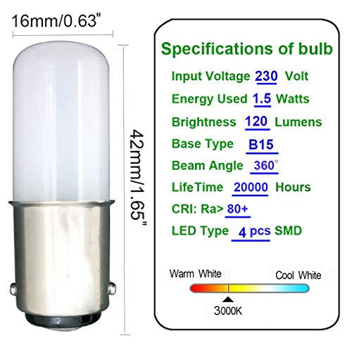 CARATTERISTICHE: La lampadina a LED ad alta luminosità B15 può creare una buona atmosfera senza sfarfallio, proteggere gli occhi, con tutte le saldature prendono il posto delle interfacce senza saldature, sicurezza e semplicità d'uso