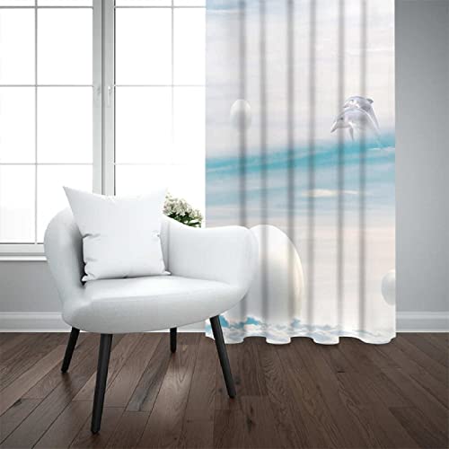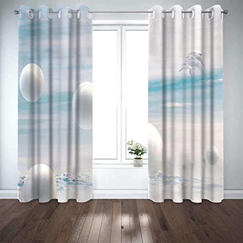 MZNVTD tende oscuranti termiche per interni Delfino, bianco Set di 2 con occhielli Tende opache termoisolanti in poliestere con stampa 3D 220x215cm (L×A) Soggiorno Camera Da Letto Finestra Balcone Per