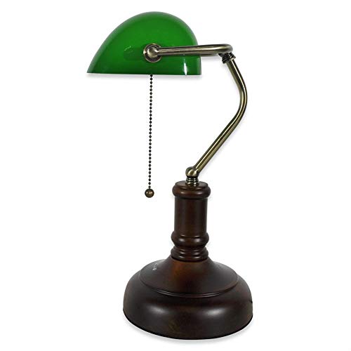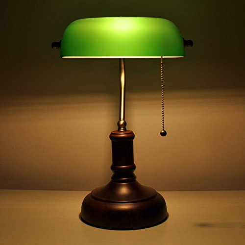 MZStech Lampada da scrivania/Lampada da banco/Lampada da ufficio Paralume in vetro bianco, interruttore a strappo e lampadina a filamento LED 4w (Verde, base in betulla)