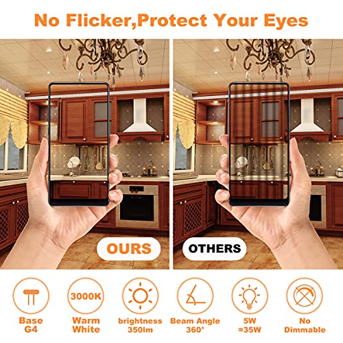 Basso consumo energetico: la lampadina G4 consuma solo 5 W, la potenza luminosa può sostituire direttamente la lampadina alogena da 35 W, avrete una quantità particolarmente lunga delle lampadine G4 e risparmiare molta energia elettrica