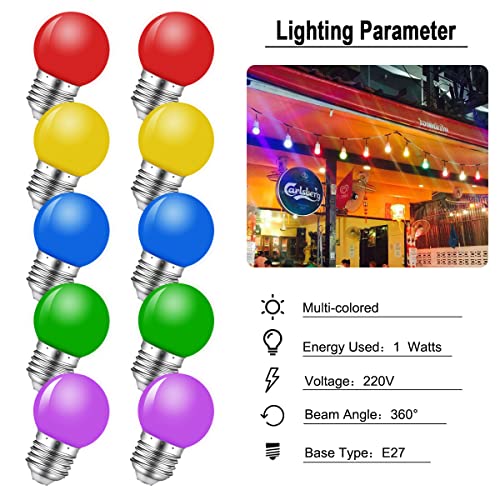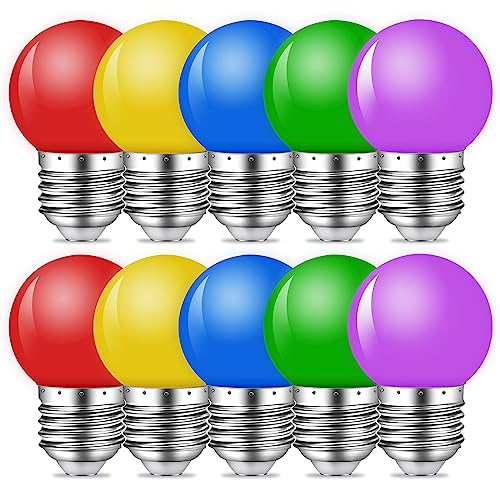 MZYOYO Lampadine a LED colorate, E27,1 W, E27 G45, colori misti, lampadine a LED, rosso, giallo, blu, verde, viola, per catena di luci colorate, decorazioni natalizie, confezione da 10 pezzi