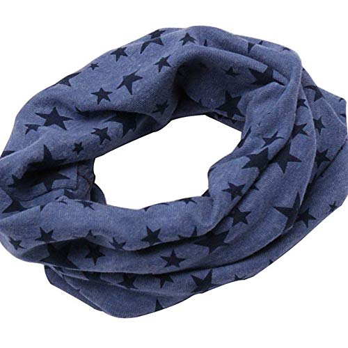 N-brand PULABO - Sciarpa autunnale invernale per bambini e bambine, morbida sciarpa con motivo pentacle, in cotone, calda sciarpa blu navy, ecologica e robusta, pratica