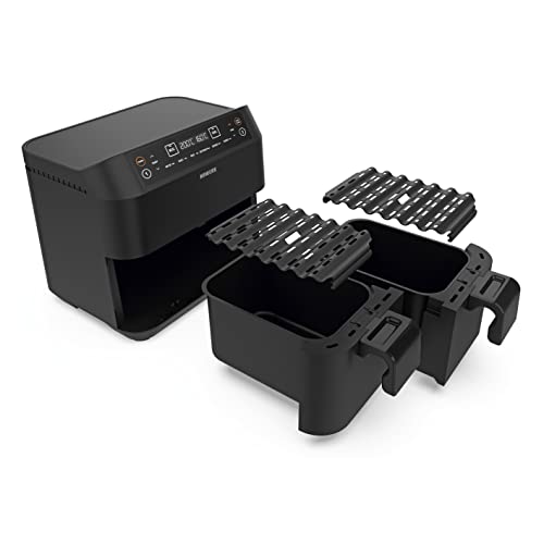 Grande capacità per grandi quantità: La friggitrice ad aria calda segna 3,8 litri per cestello, 7,6 litri in totale - ideale, per esempio, per un massimo di 1 kg di patatine croccanti per una dieta consapevole e a basso contenuto di grassi per tutta la famiglia.