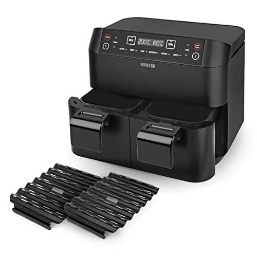 N8WERK Friggitrice ad Aria Calda a Doppia Camera Nera | con 2 Zone di Cottura Separate | 6 Programmi & Modalità Manuale | 7.6 Volume totale | con Display Touch a LED | max. 2400 W