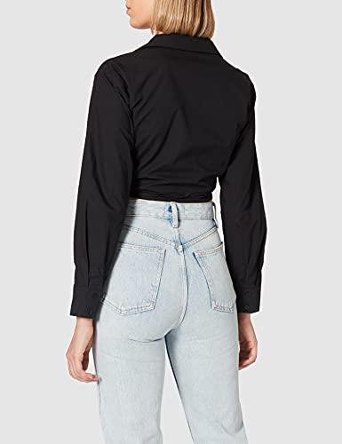 NA-KD Overlap Cropped Shirt, Camicia Cropped Sovrapposizione, Donna, Nero, 46