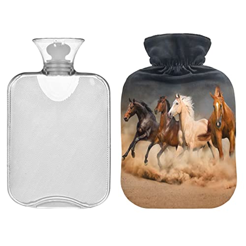 Naanle Borsa dell'acqua calda con coperchio per cavalli da corsa trasparente e calda, borsa per acqua calda, per letto, mani, piedi, sollievo dal dolore, terapia calda e fredda, 2 l