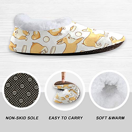 Naanle Cartoon Dog Corgi - Pantofole da donna chiuse sul retro della casa, pantofole in memory foam, comode pantofole per interni ed esterni, scarpe da camera da letto in pile sfocato, calde pantofole per la casa con suola in gomma antiscivolo, Multicolore, 40/42 EU