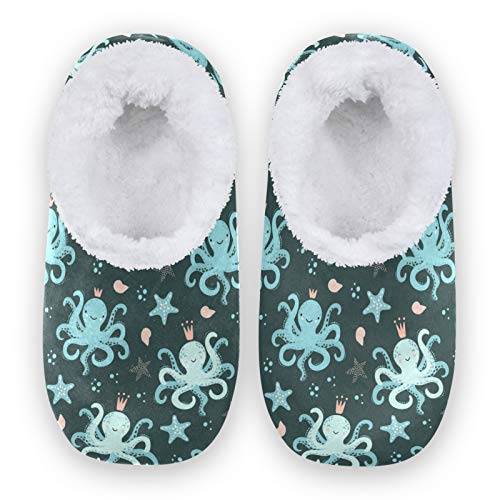 Naanle - Pantofole da donna in memory foam con disegno a forma di polipo, in pile caldo, con suola in gomma antiscivolo, (Multicolore), 37/38 EU