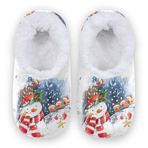 Naanle Pantofole da donna con motivo pupazzo di neve con motivo a pupazzo di neve da donna, in memory foam, comode pantofole per interni ed esterni, scarpe da camera da letto in pile sfocato, calde pantofole per la casa con suola in gomma antiscivolo, Multicolore, 38/39 EU