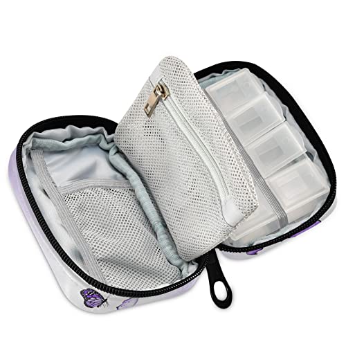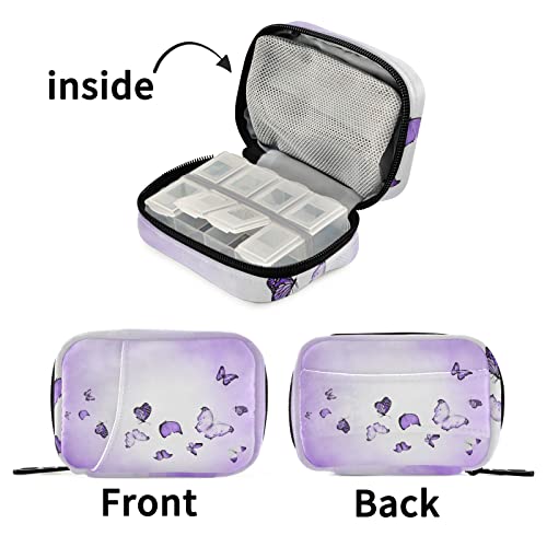 Naanle Scatola per pillole a forma di farfalla viola 7 giorni custodia per pillole da viaggio borsa organizer con cerniera porta pillole portatile custodia settimanale compatta