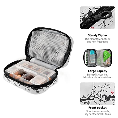 Naanle Squirrels in Love Pillola Box 7 Giorni Pillola Caso Sacchetto Organizzatore Pillola Sacchetto con Cerniera Porta Pillola Portatile Settimanale Formato Compatto