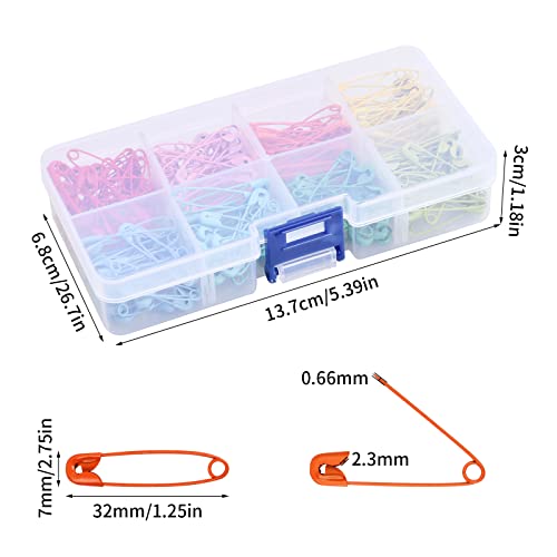 【Cosa Ottieni】Il pacchetto include Spille da Balia 240 pezzi in 8 colori. Viene fornito con una pratica scatola riutilizzabile. Ogni dimensione della spilla da balia: 32 mm di lunghezza, 7 mm di larghezza. Senza piombo e cadmio.