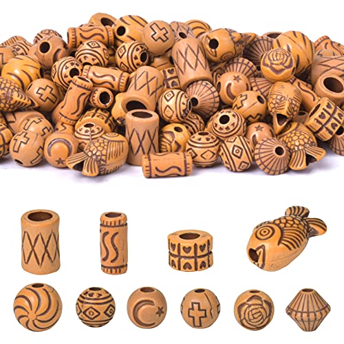 ✪【Materiale】Queste perline di legno stampate sono realizzate in resina e rivestite con vernice per legno, che è più leggera e resistente delle normali perline di legno. Sono lucidi, lisci e privi di sbavature, non si sbiadiscono facilmente e possono essere utilizzati a lungo.
