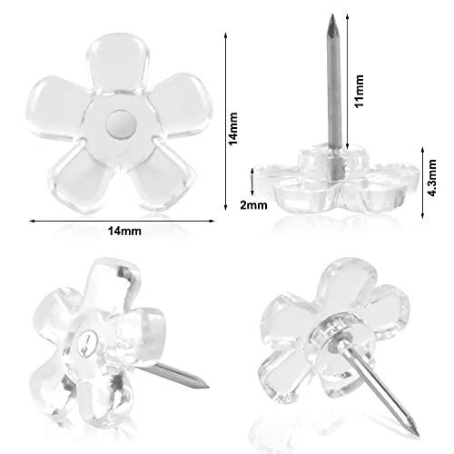 【Materiale】Queste Puntine da Disegno sono realizzate in plastica con punta in metallo, resistenti e durevoli, a forma di fiore squisita e bella, plastica trasparente, cristallina.