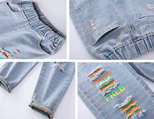 Jeans larghi strappati, alla moda e casual jeans pantaloni per le tue belle ragazze. I jeans da bambina sono realizzati in denim di alta qualità, traspiranti, morbidi, anti rughe, non si deformano e sono comodi e delicati sulla pelle.