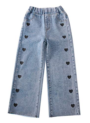 NABER Jeans da ragazza casual con motivo a cuore elastico in vita a gamba larga jeans dritti età 4-13 anni