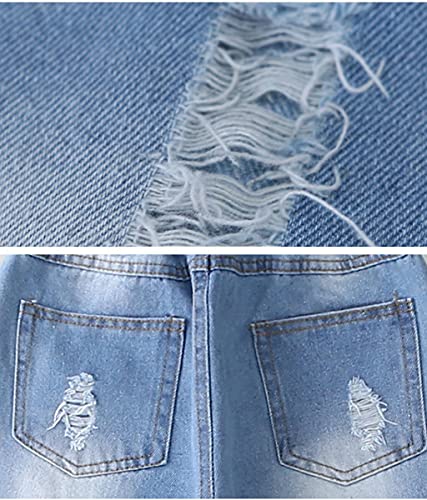 NABER Pantaloni di jeans lavati alla moda per ragazze e ragazze, con elastico in vita, jeans strappati alla moda, taglia 4-14 anni, Blu 2, 13-14 Anni