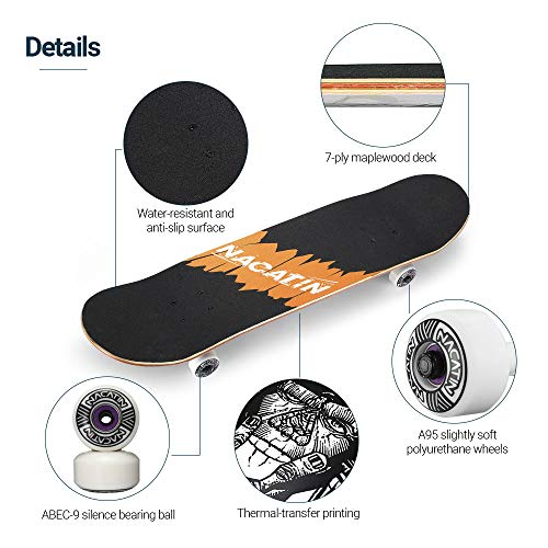 NACATIN Completa Skateboard per Bambino e Adulto con Strumento T Tool Cuscinetto ABEC-9 95A Ruote Antiscivolo per principianti e professionisti