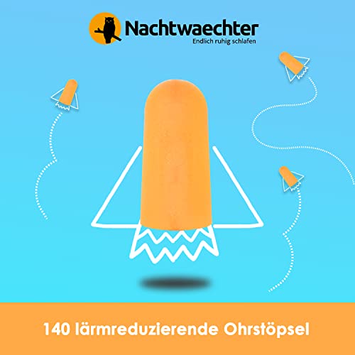 Nachtwaechter Tappi per le orecchie per dormire, 140 pezzi, usa e getta, 38 dB, per un sonno tranquillo e contro il russare, ideali come protezione dal rumore per viaggi e lavoro