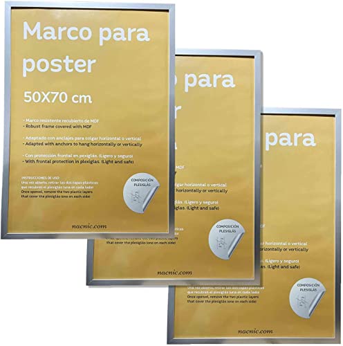 Nacnic - Cornice per foto in argento 50 x 70 cm | Legno MDF e vetro acrilico | Decorazione della casa con quadri, fogli, poster e puzzle