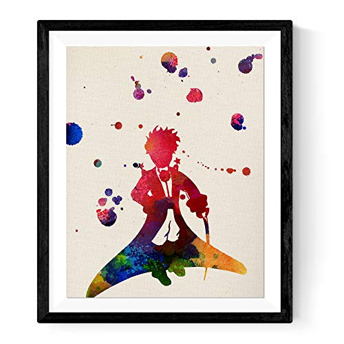 Nacnic stampa artistica con immagine del piccolo principe. Stile acquerello. Pittura in stile nordico. Poster in stile scandinavo.. colori acquerelli e vivaci. cameretta bambini.