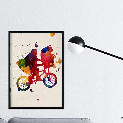 Nacnic Stampa Artistica in Stile acquarello del Film d'animazione ET. Colori Vivaci. Rappresentazione di delle Scene più significative del Film. Stampato su Carta da 250 Grammi di Alta qualità.