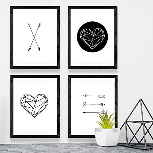 Nacnic Set di 4 Stampe artistiche, tema frecce geometriche e cuore. bianco & nero. Stampe in stile nordico. Poster in stile scandinavo.250 Grammi di Alta Qualità.