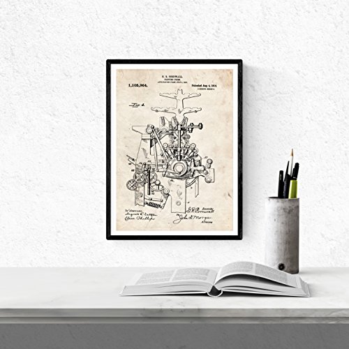 Nacnic Set 4 stampe artistiche di immagini con i brevetti di macchine da stampaggio, tipografia, stampa VINTAGE. Manifesti con invenzioni e vecchi brevetti. 250 Grammi di alta Qualità. .