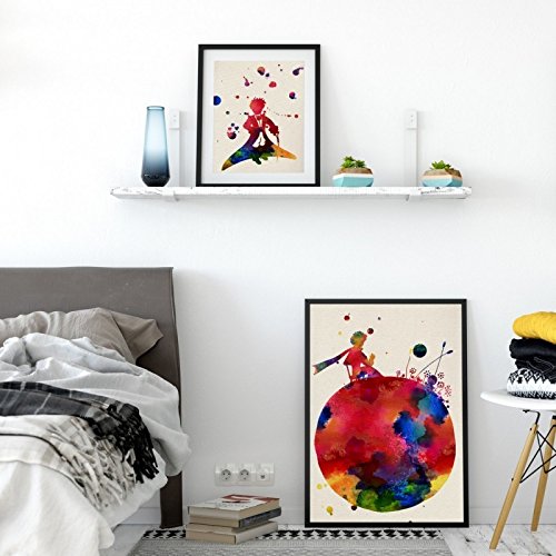 Nacnic set 2 stampe artistiche con immagini del Piccolo Principe. Stampe di diverse dimensioni: Piccolo Principe seduto 30x40 cm, in piedi 20x25. Arreda la cameretta bambini.
