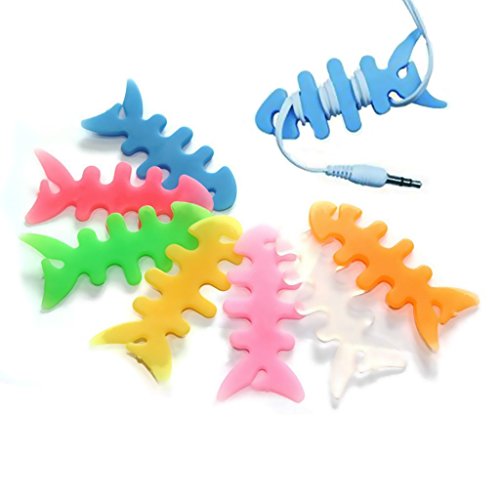 Nacpy - Avvolgicavo a forma di osso di pesce, avvolgicavo in plastica, cavo colorato per cuffie per cavo di alimentazione