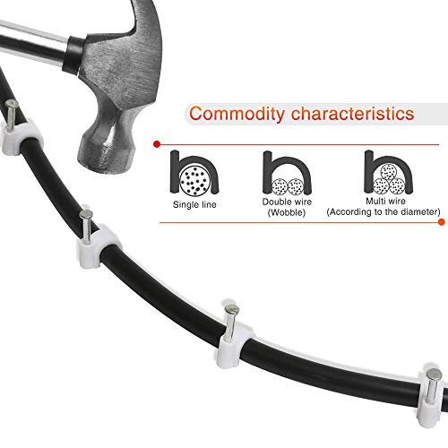 Materia robuste: fermacavo da muro sono costituiti da un chiodo e un clip fermacavo, buona resistenza e robustezza, elevata resistenza termica, lunga durata, forma rotonda, ben proteggono e fissano i cavi.