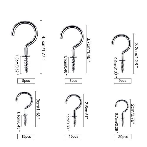 6 misure: ganci a viti per legno forniti in 6 grandezze diversi, in cui lunghezze sono disponibili in 20mm, 26mm, 30mm, 32mm, 37mm, 45mm, gancetti a vite per appendere facilemente.