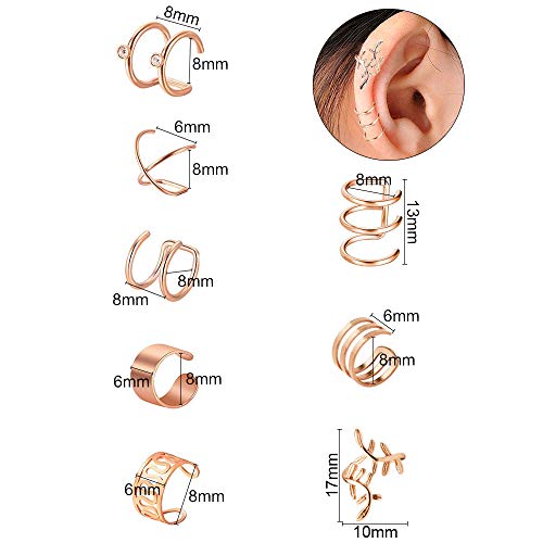 NACTECH 8 Paia Polsino dell'orecchio Orecchini Cartilagine Oro Rosa Orecchio in Acciaio Inossidabile Clip Orecchio Cartilagine Non Piercing per Donne Uomo 8 Stili Diversi (16 pezzi)