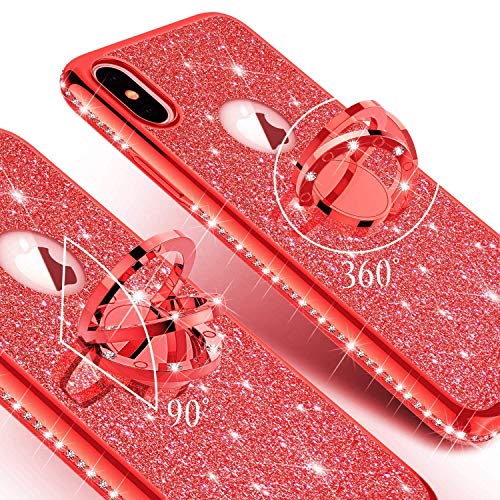 Nadoli Cover per Galaxy A40, con strass e strass e 360 anelli, in silicone, per Samsung Galaxy A40, colore: rosso